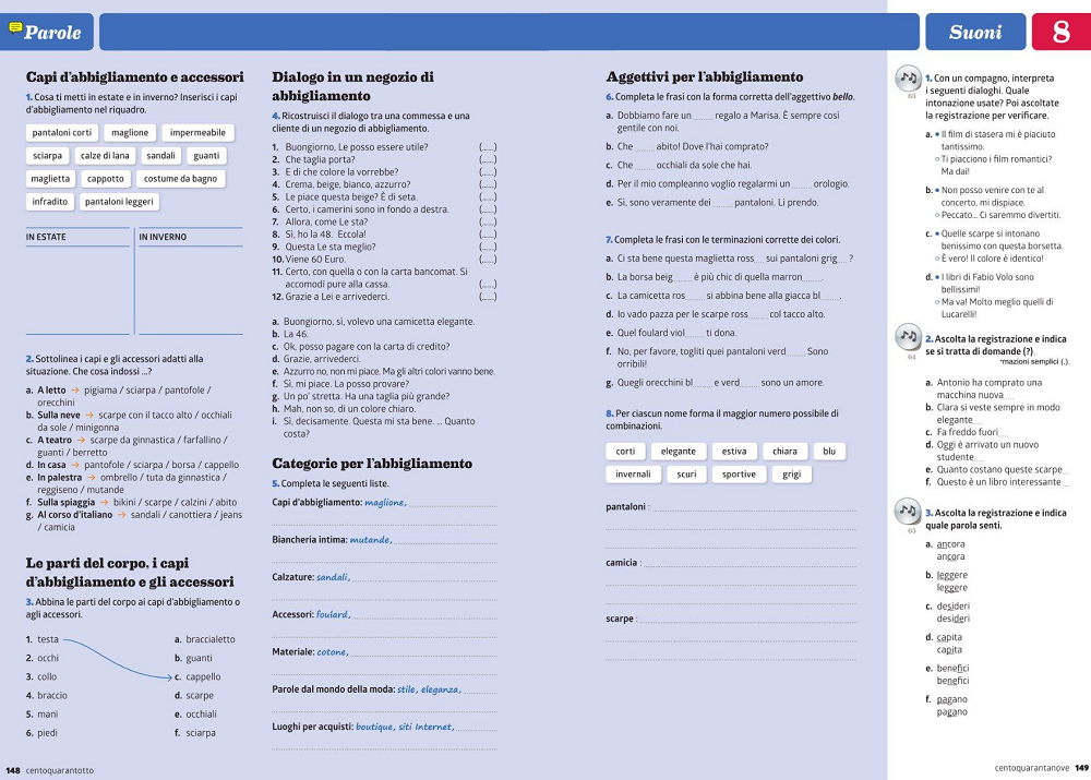 Fate gli esercizi di Parole e Suoni (p. 148-149) dell'Unità 8. Poi, inviate qua la foto o lo screenshot degli esercizi compilati. In allegato, vi lascio gli audio per fare gli esercizi di Suoni.